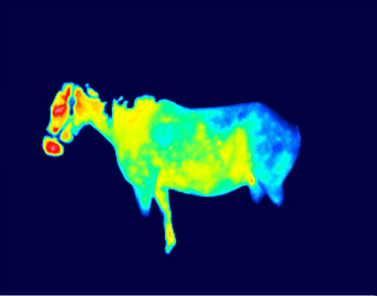 Die Wärmebildkamera sendet keinerlei Strahlung aus, sodass die Untersuchung für Pferd und Mensch absolut ungefährlich ist.